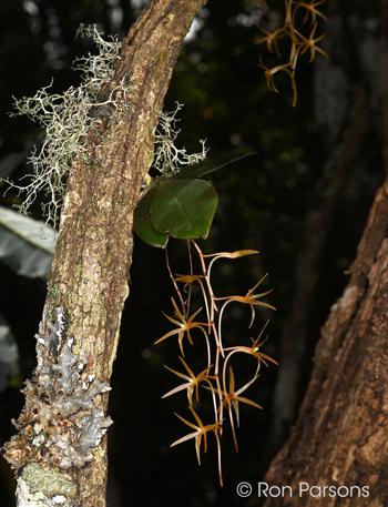 Aerangis seegeri #6870 outcross (approximately 25 seedlings per flask). Species: This species is found at elevations from sea level to 5000 ft as an epiphyte. It is found in the eastern Madagascar in coastal and highland mountains and humid eastern forests as well as on Ile Sainte Marie an island of the east coast. It was first described in 1983 and is still not widespread in cultivation. The mature leaves are less than 2” long and the inflorescence is about 10” long carrying 6 to 12 flowers that are 0.8” wide. Mine have bloomed in cultivation in the late spring. Culture: Because this species grows in a wide range of elevations, it should have some adaptabiliy to temperature ranges. It does well with good humidity and shade to moderate light. Regular water and fertilizer during the growing season. Summers are warm and wet while winters are cooler and drier. It doesn't need a hard, dry rest. Aerangis seegeri: I do not have images of the parents so show here some examples of the species from collections and one in situ in Madagascar.