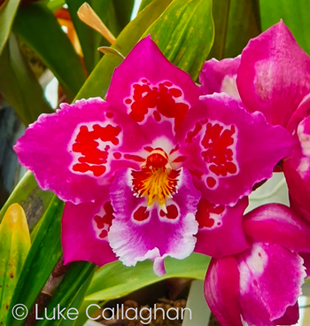 Odontioda (Joe's Drum x Kendrick Williams) #6424 (approximately 25 seedlings per flask). The Hybrid: This is a hybrid from Bob Hamiton of Hawk Hill Nursery. Bob is a well known and successful hybridizer of the Odontoglossum alliance. The parents are Odontioda Joe’s Drum and Odontioda Kendrick Williams. Culture: This Odontioda hybrid will need cool to cool-intermediate temperatures to thrive. Moderate to moderately bright light. If the temperatures are cool they can do well with the moderately bright light. You don’t want to give them so much light that the leaves feel warm to the touch. Give them year round water and dilute fertilizer. Traditionally grown in fine bark or bark mix. Oda. Joe’s Drum ‘Hawk Hill’ Oda. Kendrick Williams (though it is not the parent used in this cross) |